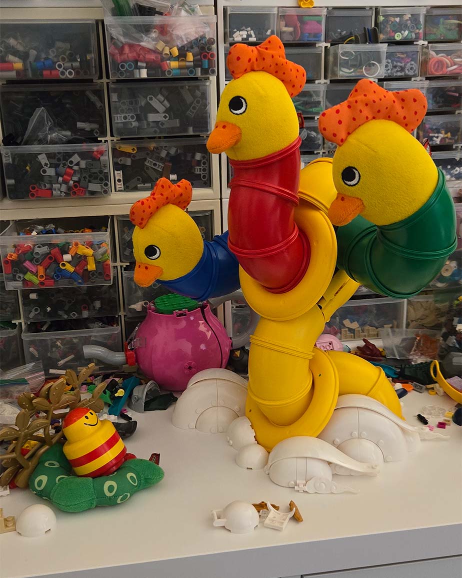 The theme for this round was "From Above". I told myself I have to try to at least squeeze in one Primo build this year, and this theme was the perfect candidate. "From Above" lends itself to heavenly deities and gods, so I started to just mash Duplo tubes and chicken heads together until I got a sort of amorphous, biblically accurate form.